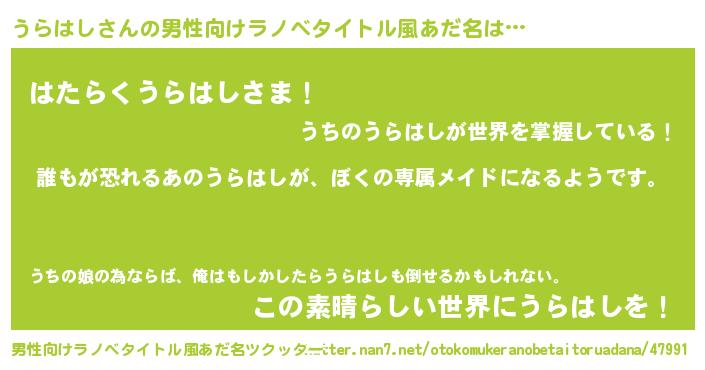 | ヒーロー風カッコイイあだ名 | 『ネオウラハシ』『仮面ウラダー』 |