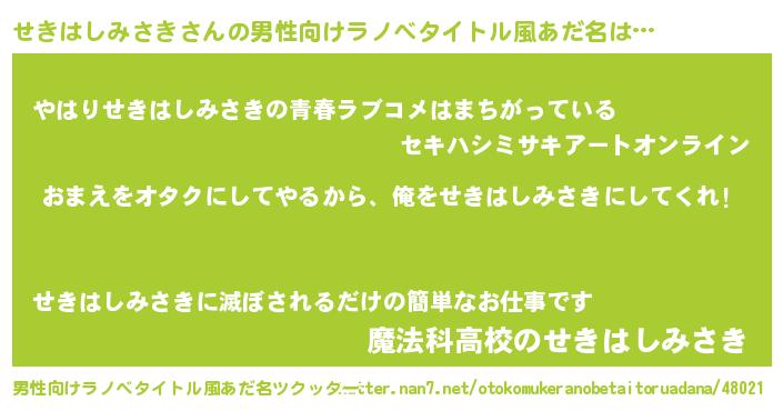 | 女子向けラノベタイトル風あだ名 | 『せきはしみさき夫妻のなれそめ』 |