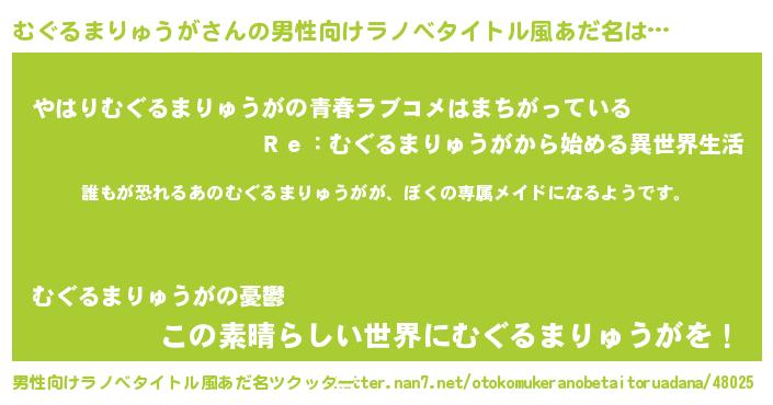 | 意味不明あだ名 | 『永久保存むぐるまりゅうが』 |