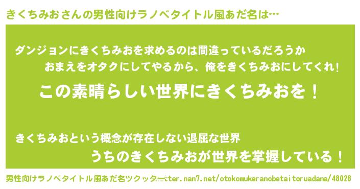 | 女子向けラノベタイトル風あだ名 | 『悪役きくちみおに転生したようですが、知った事ではありません』 |