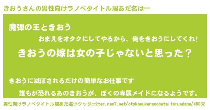 | 女子向けラノベタイトル風あだ名 | 『きおう様がみてる』 |