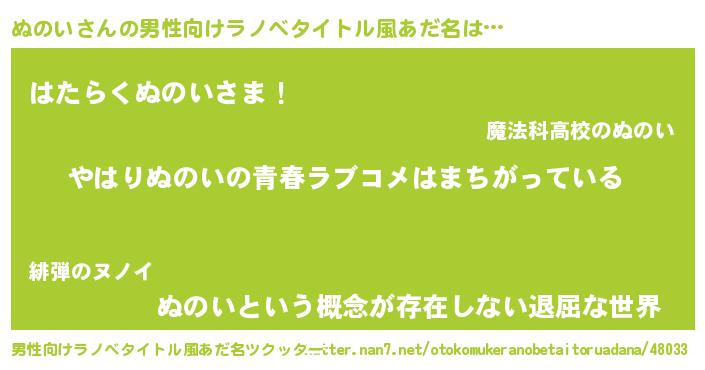 | 女子向けラノベタイトル風あだ名 | 『ぬのいの雑貨屋さん』 |