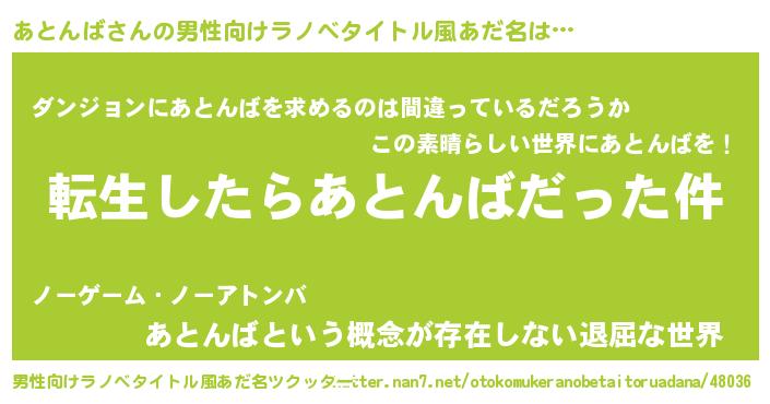 | 女子向けラノベタイトル風あだ名 | 『あとんばの玉の輿計画!』 |