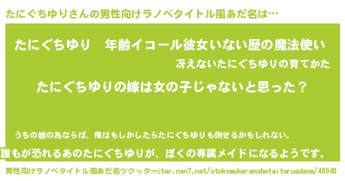 | 胡散臭い通販商品みたいなあだ名 | 『伝統あるサプリメント…その名も「たにぐちゆり」』 |