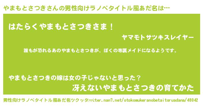 | 女子向けラノベタイトル風あだ名 | 『異世界でカフェやまもとさつきを開店しました。』 |