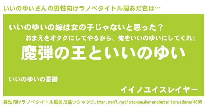 | 胡散臭い通販商品みたいなあだ名 | 『世界中を虜にした世界で10本だけ現存している希少なブランデー…その名も「いいのゆい」』 |