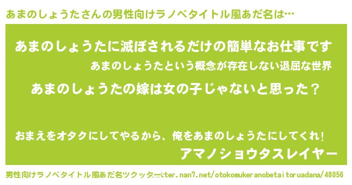 | 意味不明あだ名 | 『とにかく怪しいあまのしょうた』 |