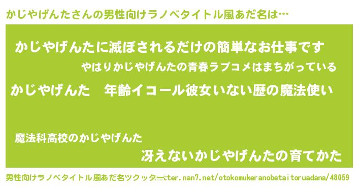 | 女子向けラノベタイトル風あだ名 | 『かじやげんたの玉の輿計画!』 |