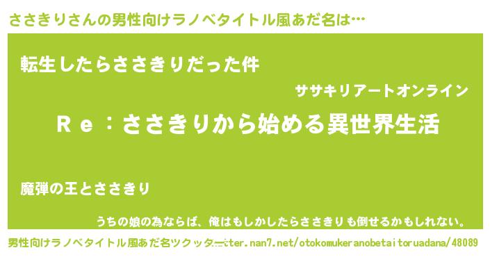 | 女子向けラノベタイトル風あだ名 | 『闇のささきり』『ささきりの婚約者』 |