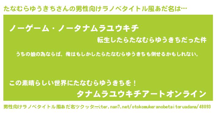 | ファンタジー風あだ名 | 『エターナルタナムラユウキチー』 |