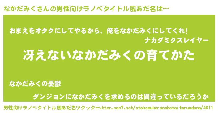 | 胡散臭い通販商品みたいなあだ名 | 『お金では代えられない隕石のかけら…その名も「なかだみく」』 |