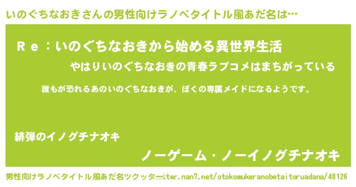 | 女子向けラノベタイトル風あだ名 | 『異世界でカフェいのぐちなおきを開店しました。』 |