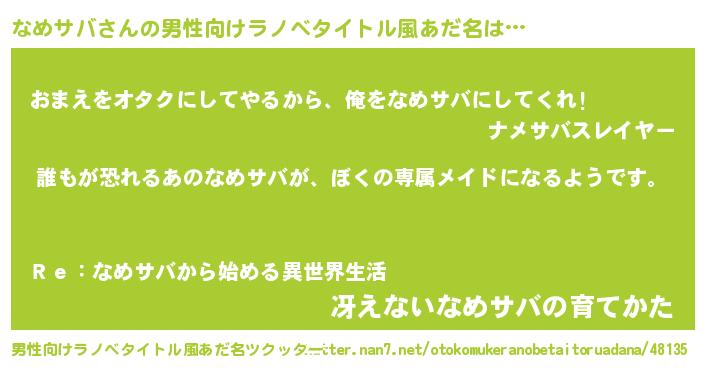 | 胡散臭い通販商品みたいなあだ名 | 『来世でも幸せになれる健康食品…その名も「なめサバ」』 |