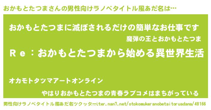 | 肩書あだ名 | 『おかもとたつま閣下』 |