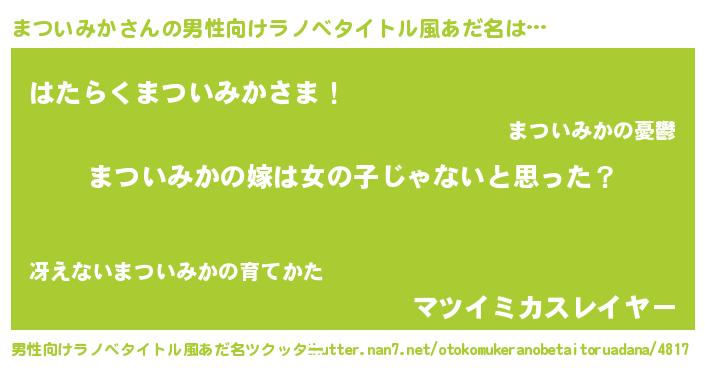 | 女子向けラノベタイトル風あだ名 | 『まついみか様がみてる』 |