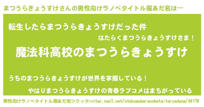 | 女子向けラノベタイトル風あだ名 | 『まつうらきょうすけなんてお断りですっ。』 |