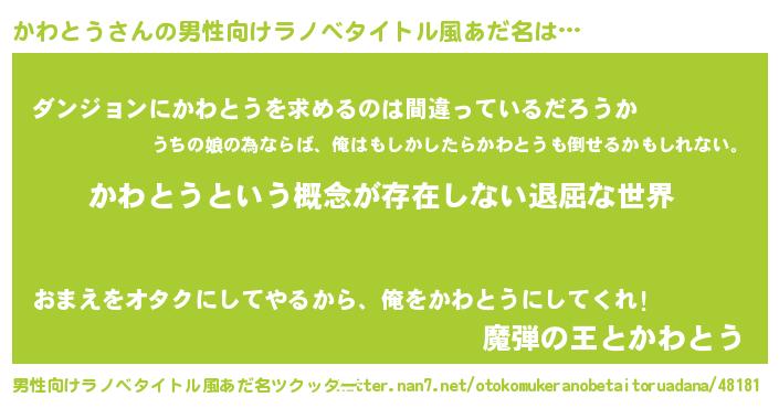 | ヘコむあだ名 | 『かわとう(遠い目)』『かわお』 |