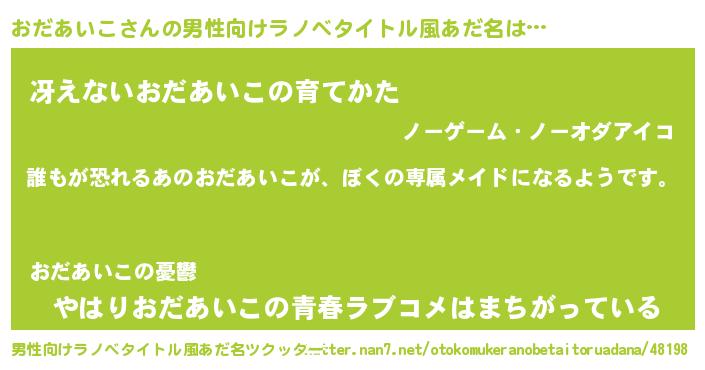 | 胡散臭い通販商品みたいなあだ名 | 『来世でも幸せになれる健康食品…その名も「おだあいこ」』 |