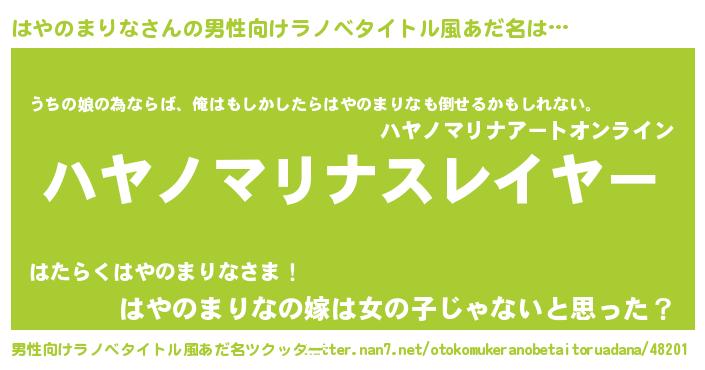 | 料理風あだ名 | 『はやのまりなごはん』 |