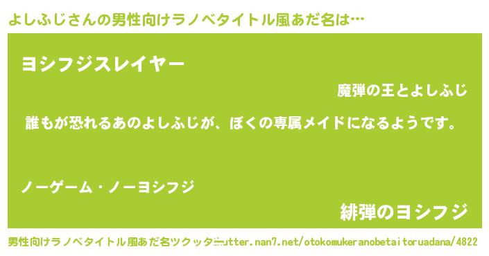 | 女子向けラノベタイトル風あだ名 | 『よしふじの契約王妃』『よしふじ恋絵巻』 |
