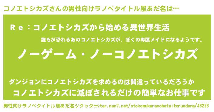 | ヘコむあだ名 | 『コノエトシカズ(苦笑)』『コノを』 |