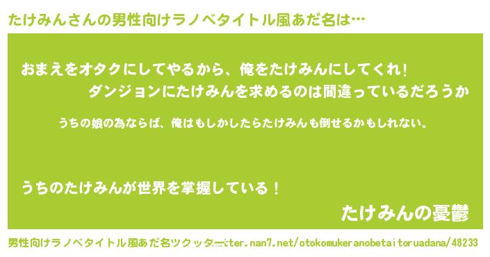 | 女子向けラノベタイトル風あだ名 | 『たけみんの婚約者』 |