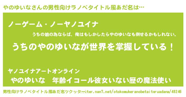 | 意味不明あだ名 | 『眠気覚ましガムやのゆいな味』 |