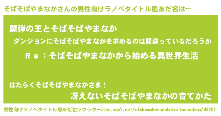 | 女子向けラノベタイトル風あだ名 | 『闇のそばそばやまなか』 |