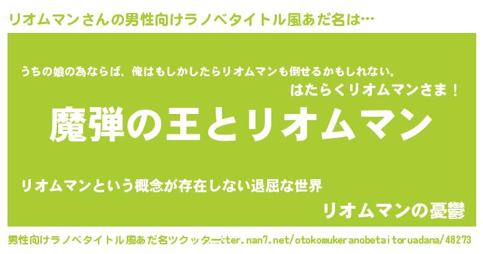 | 意味不明あだ名 | 『住所不定無職リオムマン(39歳)』 |