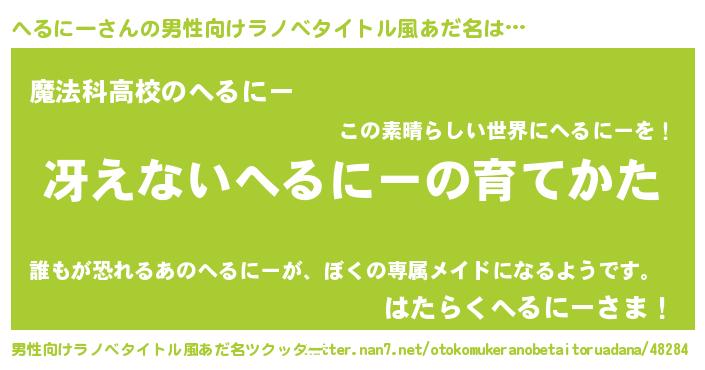 | 意味不明あだ名 | 『自称へるにー』『永久保存へるにー』 |