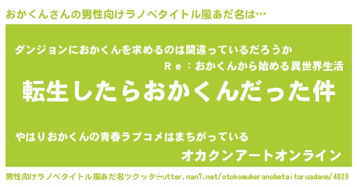 | 胡散臭い通販商品みたいなあだ名 | 『伝統あるサプリメント…その名も「おかくん」』 |