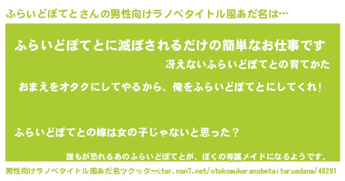 | ヘコむあだ名 | 『ふらいどぽてと(笑)』『ふらを』 |