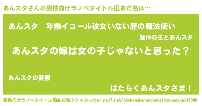 | 女子向けラノベタイトル風あだ名 | 『あんスタ様がみてる』 |