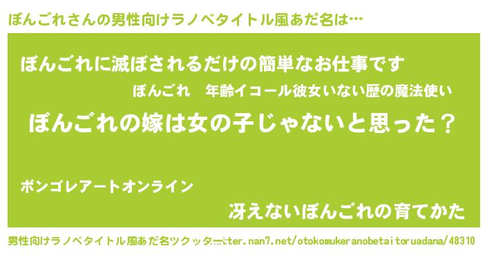 | 女子向けラノベタイトル風あだ名 | 『ぼんごれ様がみてる』 |