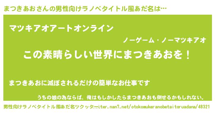 | 胡散臭い通販商品みたいなあだ名 | 『あなたにだけ特別に提供する世界で10本だけ現存している希少なブランデー…その名も「まつきあお」』 |