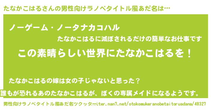 | 女子向けラノベタイトル風あだ名 | 『悪役たなかこはるに転生したようですが、知った事ではありません』 |