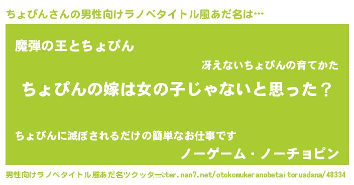 | 女子向けラノベタイトル風あだ名 | 『ちょぴん様がみてる』 |