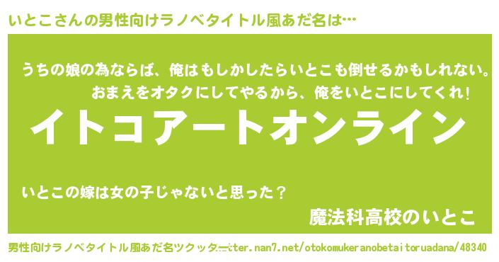 | 女子向けラノベタイトル風あだ名 | 『いとこ姫と円卓の騎士』 |