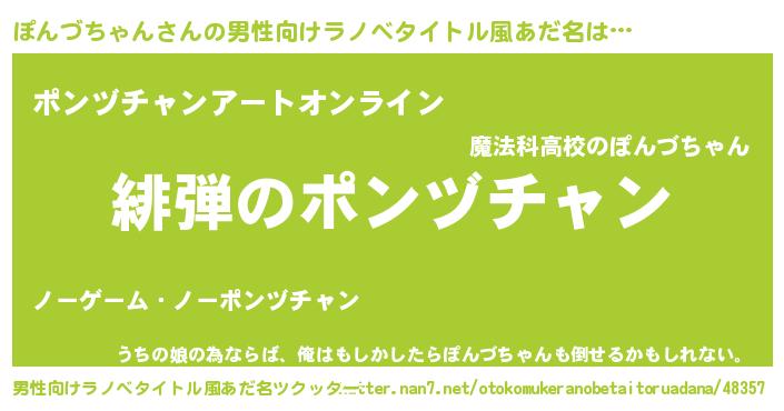 | 胡散臭い通販商品みたいなあだ名 | 『必ず成功するブレスレット…その名も「ぽんづちゃん」』 |