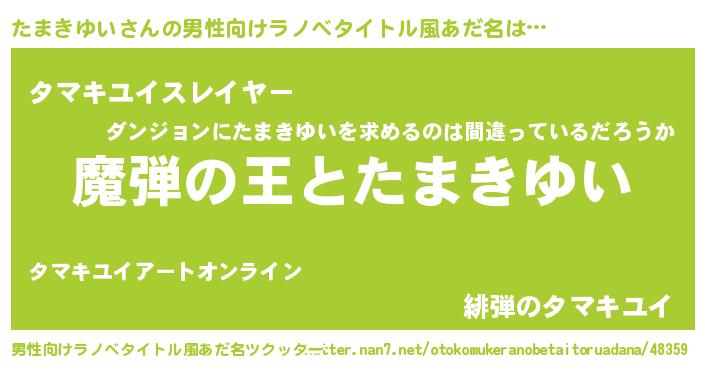 | 女子向けラノベタイトル風あだ名 | 『乙女ゲームの破滅フラグしかない悪役たまきゆいに転生してしまった…』 |