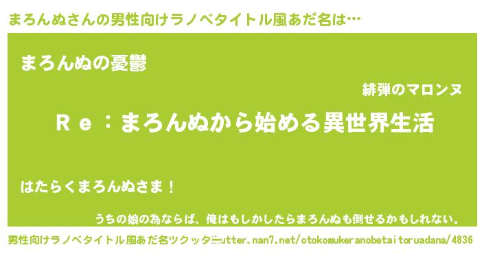 | 女子向けラノベタイトル風あだ名 | 『闇のまろんぬ』『まろんぬの婚約者』 |