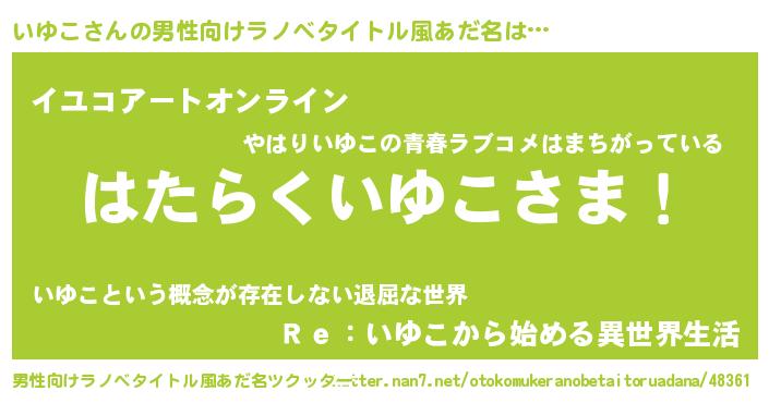 | 胡散臭い通販商品みたいなあだ名 | 『必ず成功するブレスレット…その名も「いゆこ」』 |