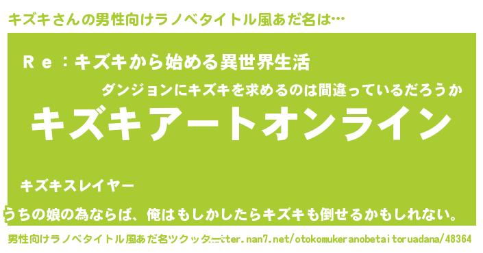 | 女子向けラノベタイトル風あだ名 | 『キズキ姫と円卓の騎士』『闇のキズキ』 |