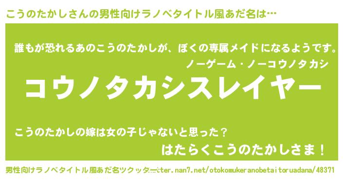 | ヒーロー風カッコイイあだ名 | 『ネオコウノタカシ』『幻影騎士コウ』 |