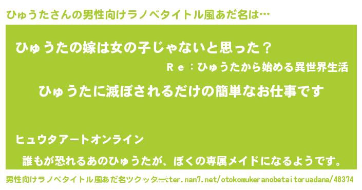 | ヘコむあだ名 | 『ひゅお』『ひゅうた(遠い目)』 |
