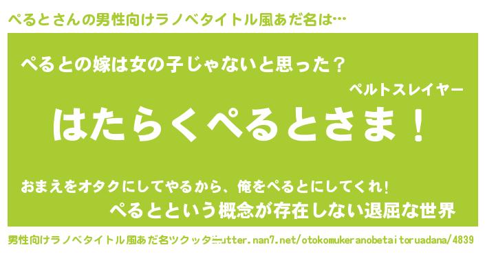 | 女子向けラノベタイトル風あだ名 | 『首の姫と首なしぺると』『ぺると恋絵巻』 |