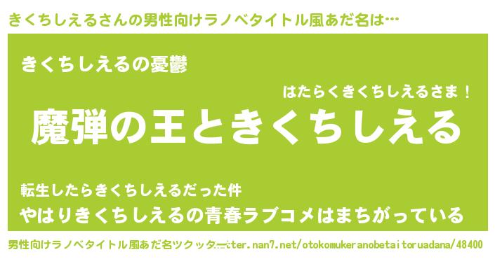 | 意味不明あだ名 | 『住所不定無職きくちしえる(85歳)』 |
