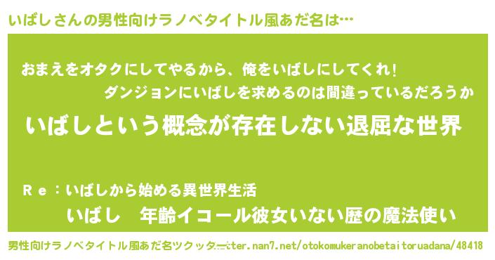 | ヘコむあだ名 | 『いばし(笑)』『いばを』『酢こんぶ』 |