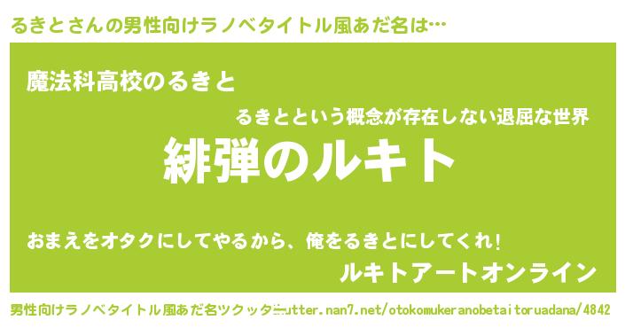 | ヘコむあだ名 | 『るきにゅー』『るきと(遠い目)』 |