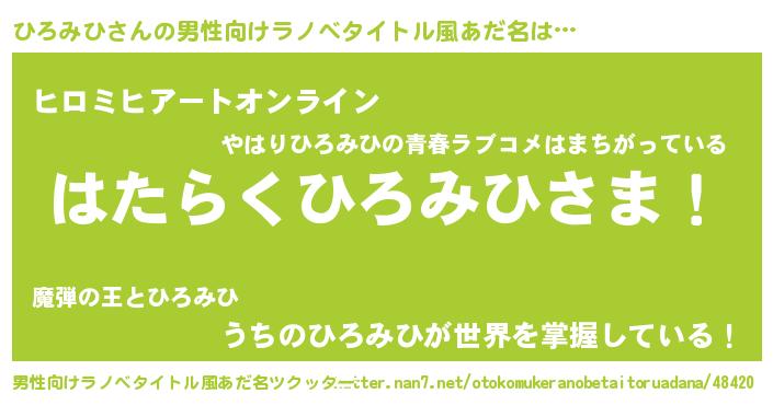 | 胡散臭い通販商品みたいなあだ名 | 『必ず成功するブレスレット…その名も「ひろみひ」』 |